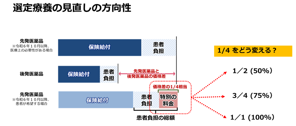 2025(令和7)年11月6日に厚生労働省の検討会で、長期収載品の選定療養費の見直しについて議論がなされました。