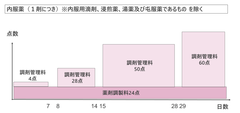 内服薬(1剤につき)の薬剤調整料と調剤管理料の算定イメージ/筆者作成